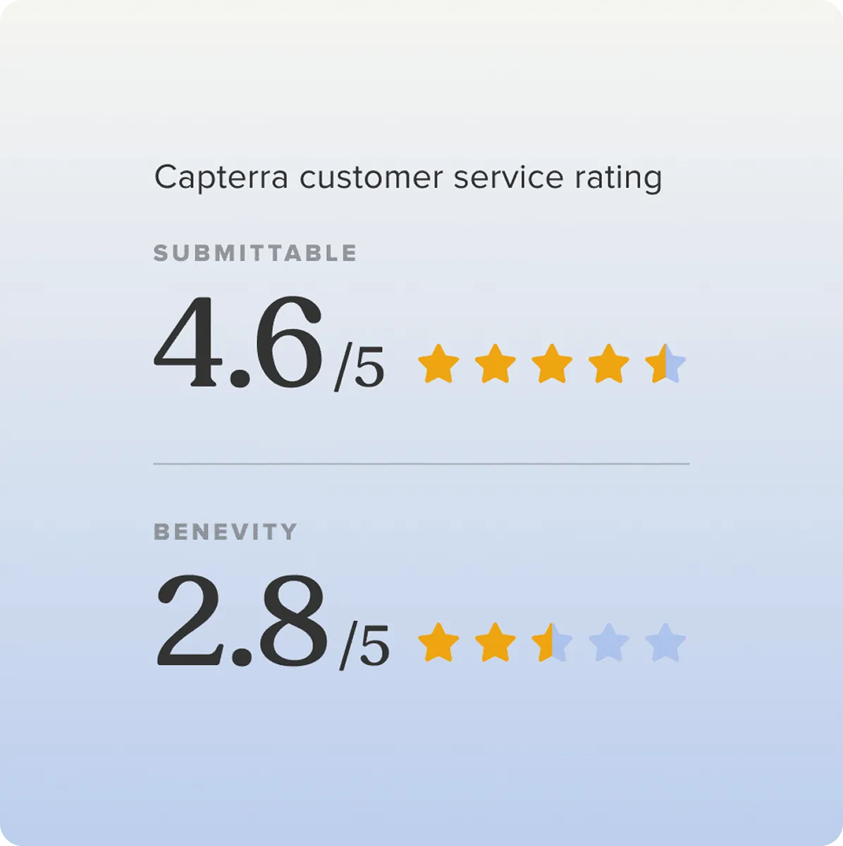 | Capterra likelihood to recommend | 90% | 47% |