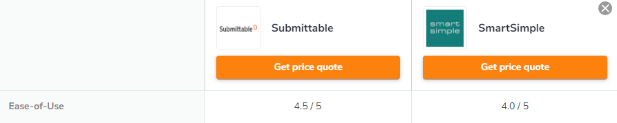 Customers rate Submittable 4.5/5 for Ease of Use on review site Software Advice vs. 4.0/5 for SmartSimple.