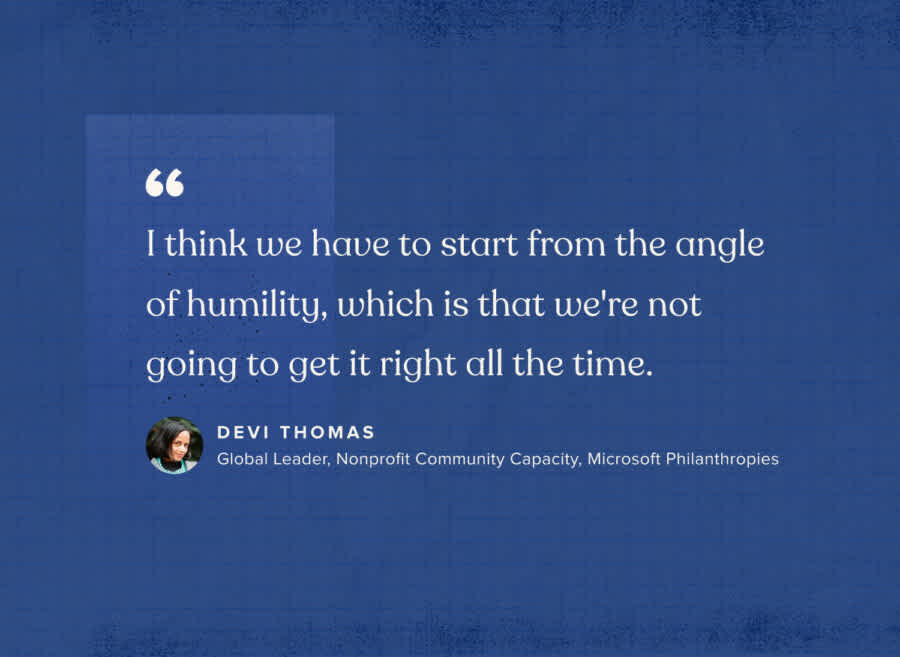 Devi Thomas from Microsoft Philanthropies explains that nonprofits working with limited resources have few options to “fail fast” and innovate in a corporate way. But with corporate support, especially in the form of unrestricted funding, nonprofits have room to experiment, adapt, and embrace new technologies and strategies, much like the private sector.