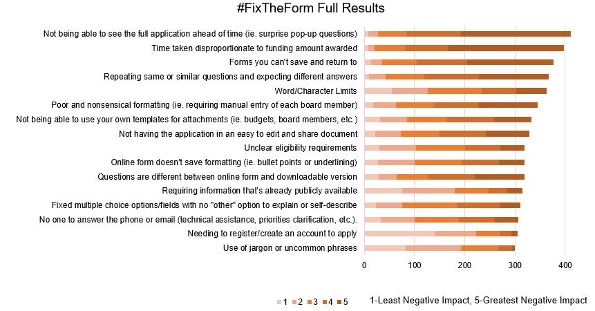 A chart of the full #FixTheForm survey results from the GrantAdvisor blog.