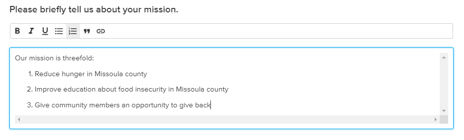 Rich text formatting makes it so much easier to communicate a message and be understood. That’s why a platform that allows for rich text formatting in your long answer written response questions is such a winner with applicants (not to mention your review team).