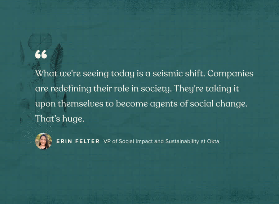 As Erin Felter, VP of Social Impact and Sustainability at Okta notes, integrated CSR—weaving social impact into your business mission—leads to more long-term, transformative change.