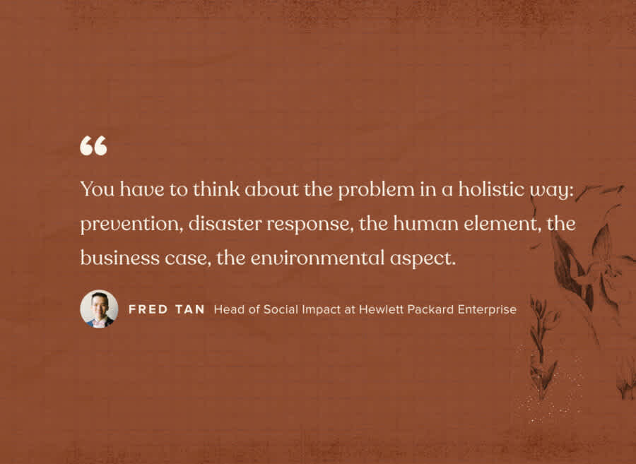 “You have to think about the problem in a holistic way: prevention, disaster response, the human element, the business case, the environmental aspect,” says Tan.