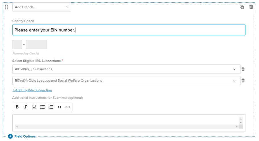 Submittable makes it easy to automatically check for 501 C-3 status eligibility with features like Charity Check.
