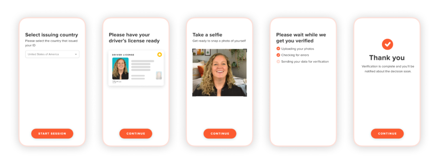 Applicants are prompted to submit a photo of their government-issued photo ID, followed by a live selfie. We help ensure an accurate match through various mechanisms. Machine learning technology guides users to take high quality photos, helping applicants adjust any issues such as poor lighting, glare, or a cropped image.