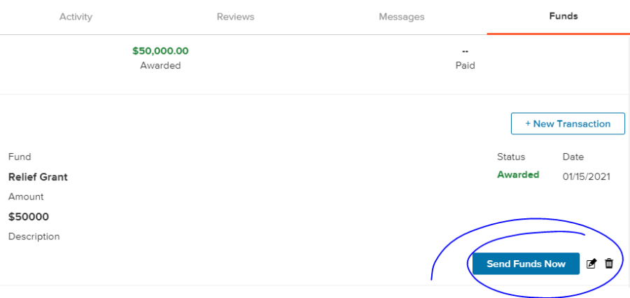 Using the Funds feature, trigger payments to awardees with the click of a button.