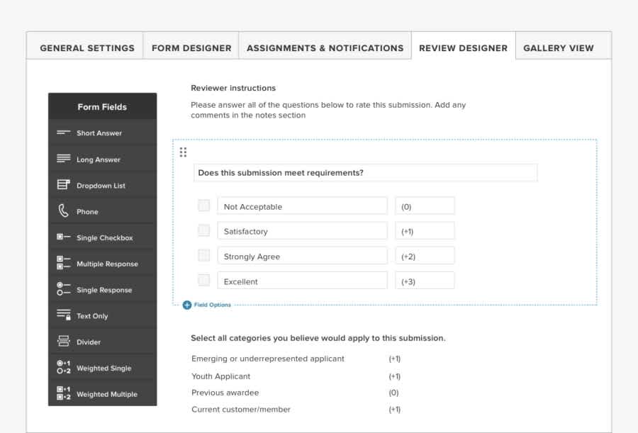 Consider how you’ll share the workload among reviewers and whether you’ll review in stages or rounds. Whenever possible, hide sensitive applicant information from reviewers to promote impartiality and focus their assessment process.