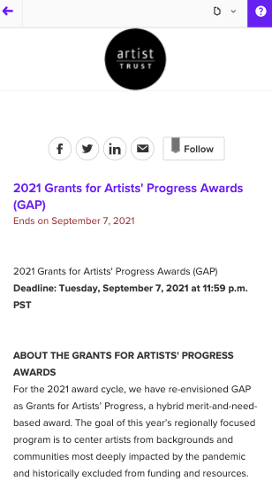 Artist Trust uses Submittable to create a clear, low-burden application process, easy to complete even on a mobile phone.