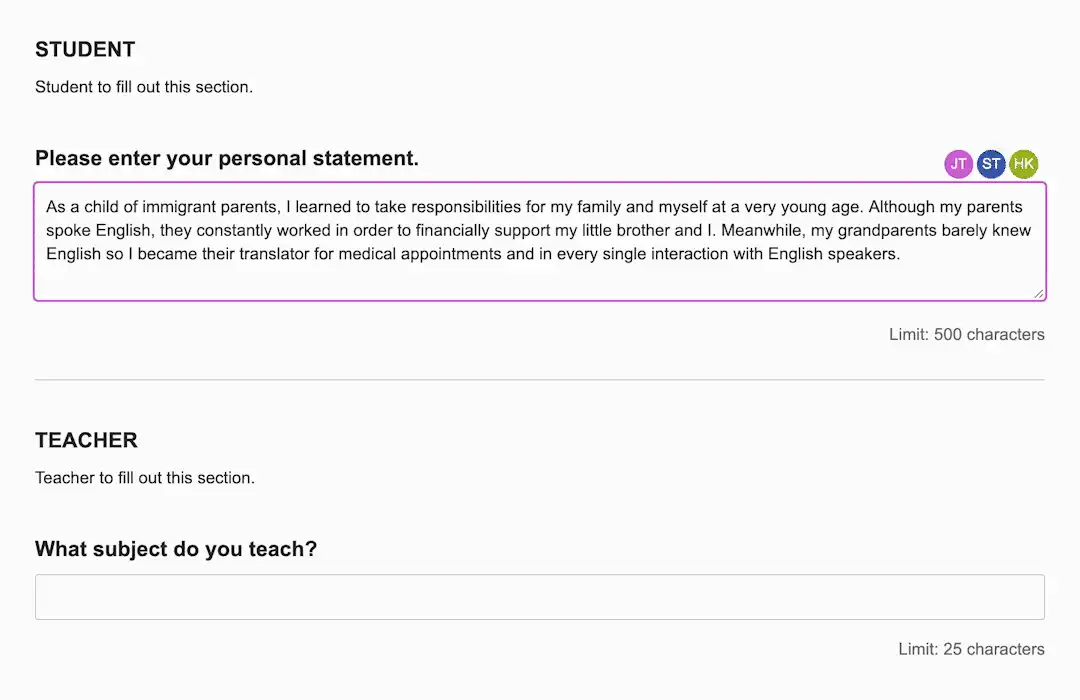 Submittable’s collaboration tool allows applicants to see the real-time presence of other contributors.