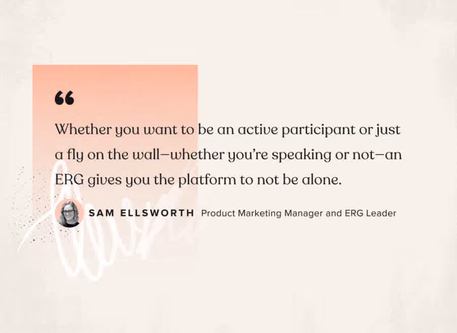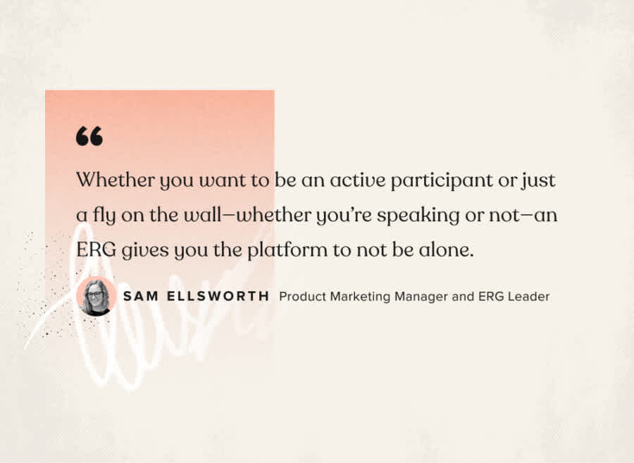 “Regardless of the subject, an ERG provides a community for people to be passionate about something, have a sounding board, and have the chance to connect with folks experiencing similar things to them,” said Ellsworth. “Whether you want to be an active participant or just a fly on the wall—whether you’re speaking or not—an ERG gives you the platform to not be alone.”