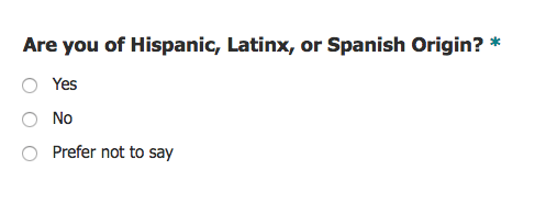 If you prefer preset options, try using form logic to designate one of them as a fill-in-the-blank field, where applicants can still self-describe if they don’t identify with the options you provided.