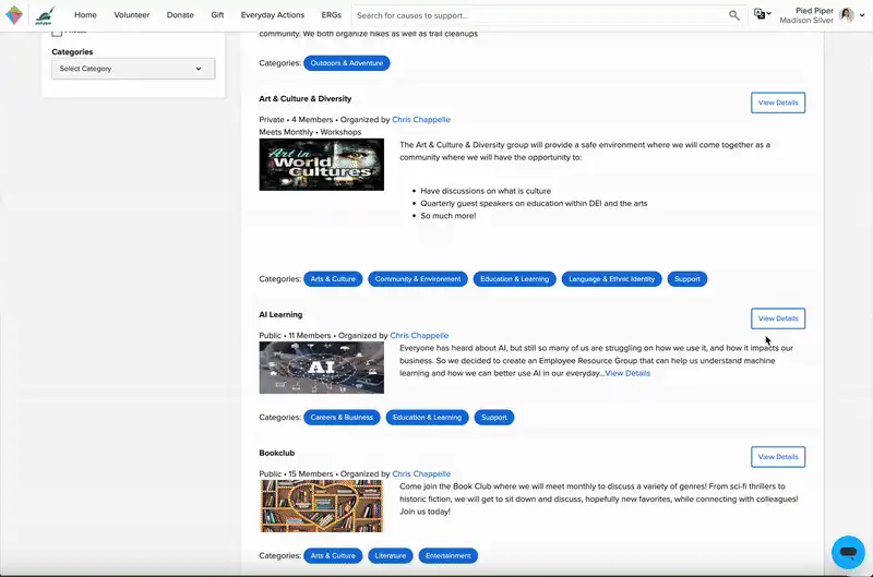 - Employees can discover and participate in ERGs alongside their other social impact activities
