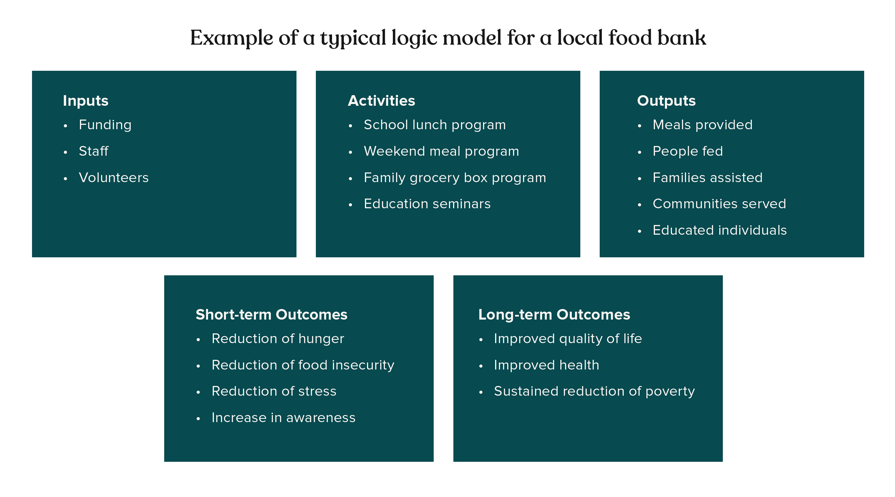 Here, the food bank and the organization that partnered with the food bank could share a set of desired short-term outcomes, which could include results like: