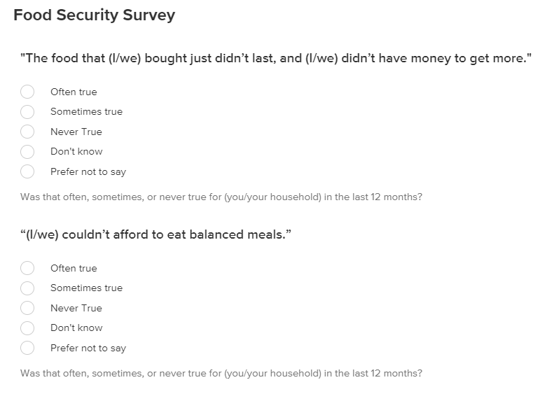 In some cases, you may be in a position to directly measure these metrics yourself. For example, food insecurity can be measured via a survey of community members.