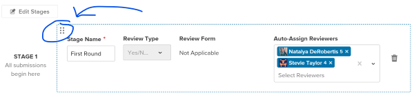You can now reoder your review stages for tweaks as you go or adjustments from year to year. Simply click Edit Stages and then drag and drop the stage into your desired order by selecting the six dots at the top left corner of each stage.