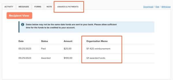 Awards & Payments Tab Improves Transparency for your Applicants