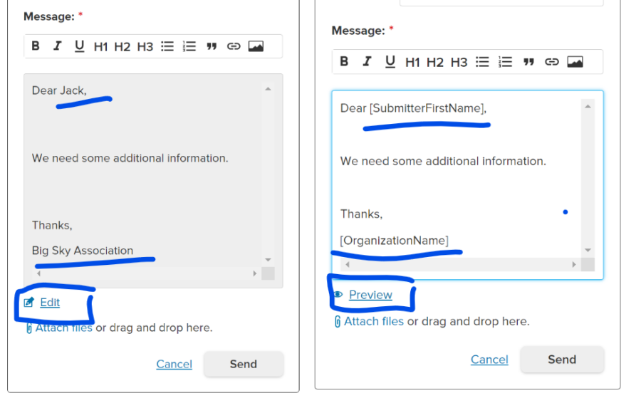 Improving grantor-grantee correspondences, program administrators can create more relevant and personalized communications, reducing the need for manual modifications to emails, minimizing errors, and saving time.