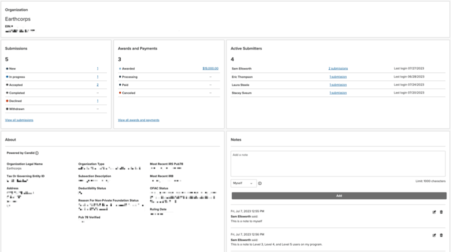 Organization Profiles: If you’re accepting applications from nonprofits, you’ll now also see an organization profile which includes their Charity Check data and is more easily accessible within the application.