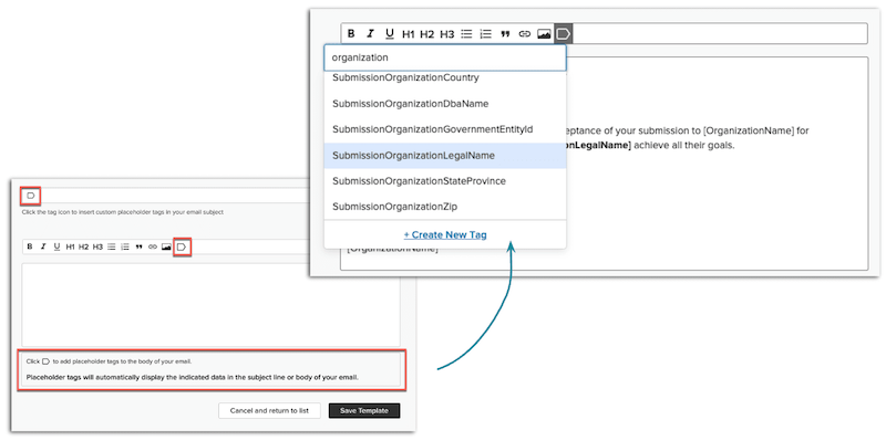 Available across all accounts, program administrators have access to an expanded library of Placeholder Tags in Email Templates and DocuSign, featuring additional details related to the submission.