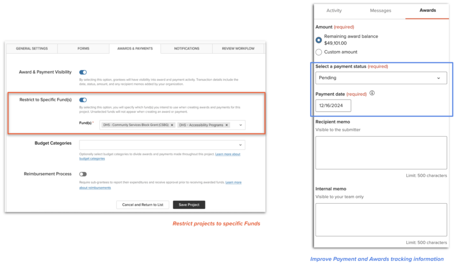 Improved Payment and Award Tracking: Track updates within award details, set payment dates, and assign award statuses that align with your internal financial processes. This enhancement helps ensure you stay on top of your financial timelines.