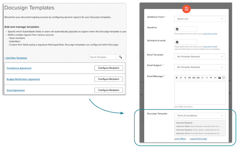 Program administrators that use Docusign to send out agreements and other legal documents can now: