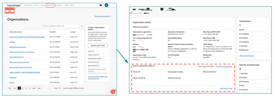 From this view, program administrators now have the ability to create and manage Custom Organization Fields that are essential to you own unique data needs. These custom fields can further support better relationship management, data analysis, funding decisions, and even improve system integrations across existing tech stacks.