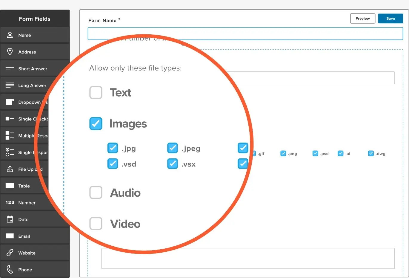 You can also specify or limit the image file types you accept.
