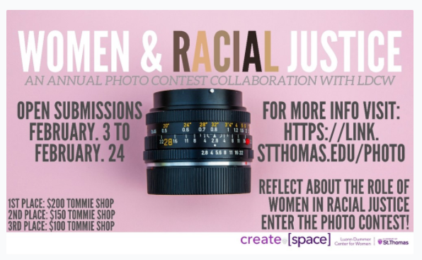 This photo contest, sponsored by create[space] and the Luann Dummer Center for Women at the University of St. Thomas, challenged entrants to connect to the 2020 LDCW theme “Women & Racial Justice.”