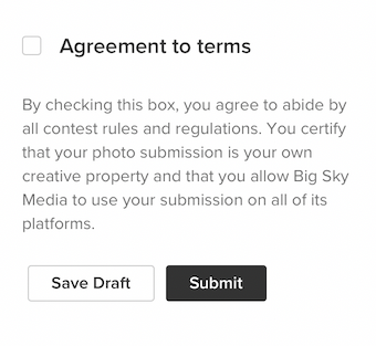 Don’t forget to have rules, regulations, and consent that participants must check off before an entry is submitted. Otherwise, you can be in hot water legally, especially if you then use the photos in future campaigns.