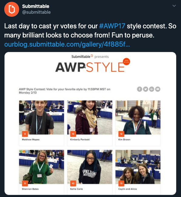 When Submittable ran a photo contest at the AWP conference, we found that using social media really helped drum up extra interest.