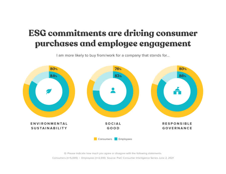 The majority of both consumers and employees prefer to align themselves with companies that make the commitment to support environmental, social, and governance (ESG) causes.