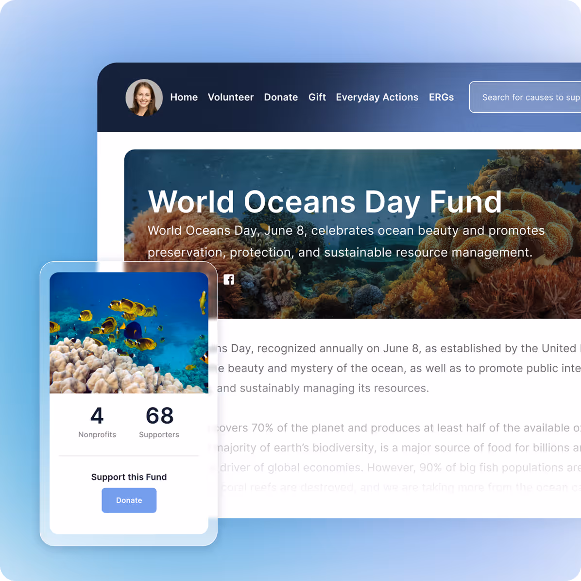 Create cause funds for charity races, in-person activities, or global events like Earth Day or Black History Month.