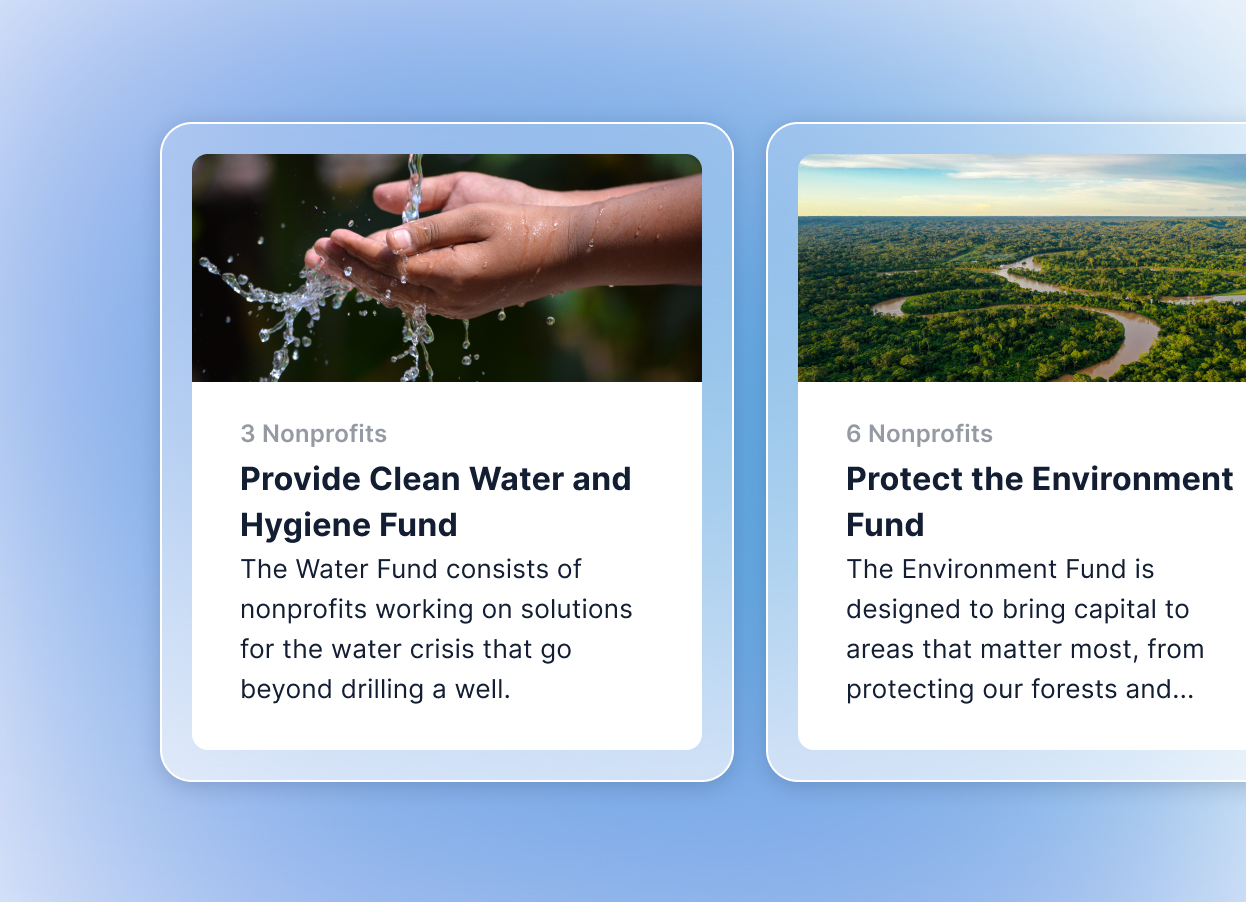 Choose a handful of organizations from a network of 9.6 million vetted nonprofits or browse Submittable’s curated cause funds.