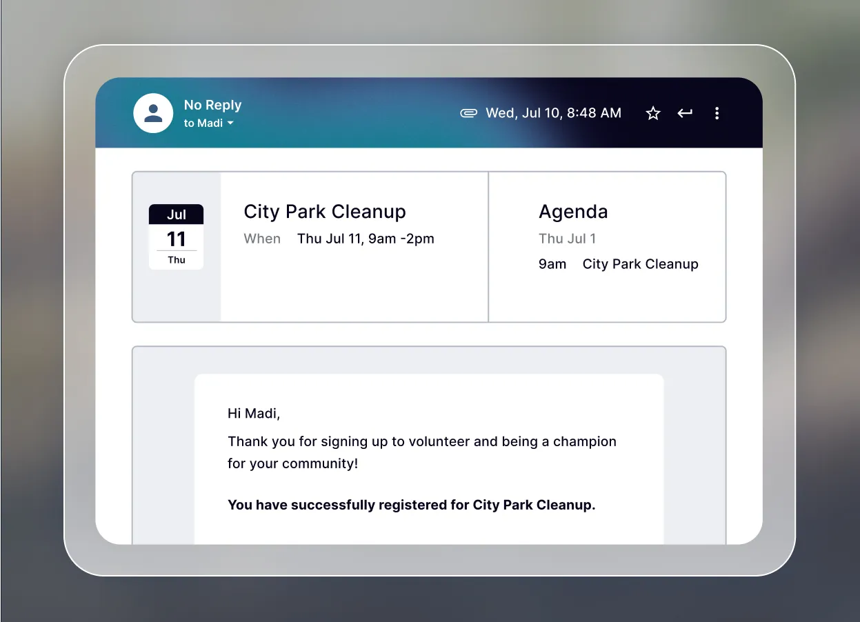Employees can opt into recurring donations each pay period for hands-off donations. When employees register for events, the event is automatically added to their calendars so they don’t forget.