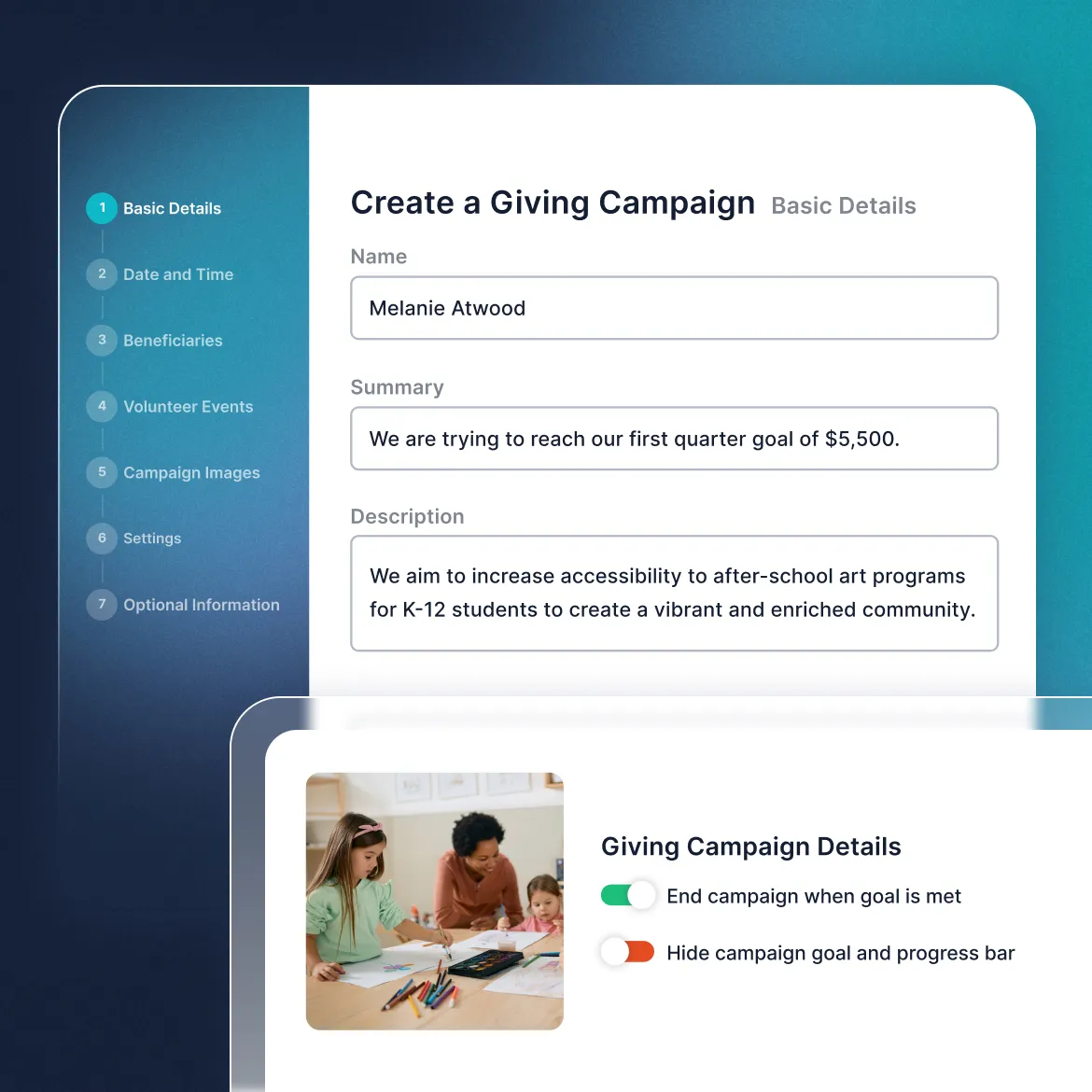 Empower employees to create volunteer events and giving campaigns on their own. The whole way you’ll have full visibility with permissions and approvals processes.