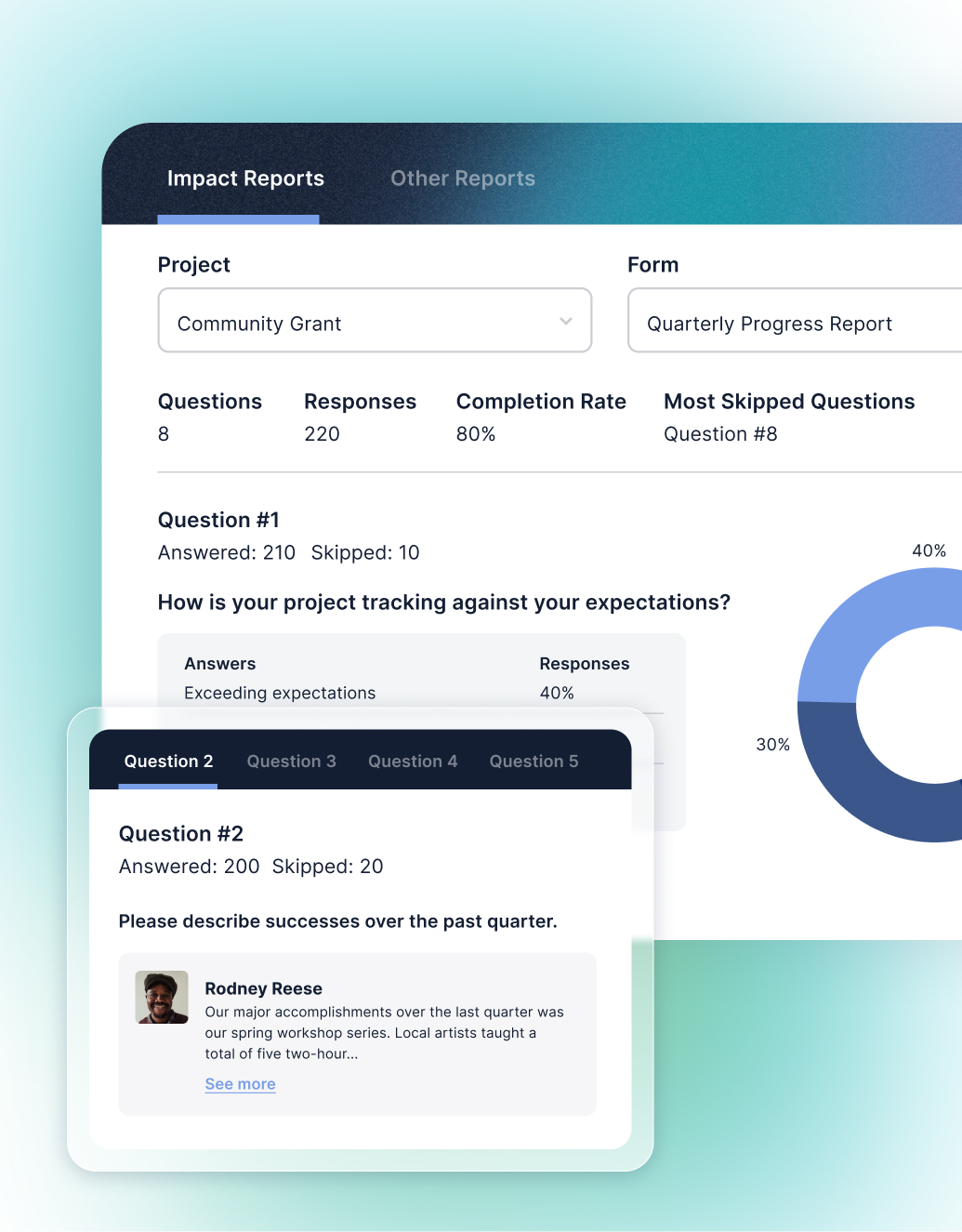 When it comes time to create yearly impact reports for stakeholders, you’ll have both a high-level dashboard view of your impact across all programs and deep-dive insights thanks to advanced reporting tools.