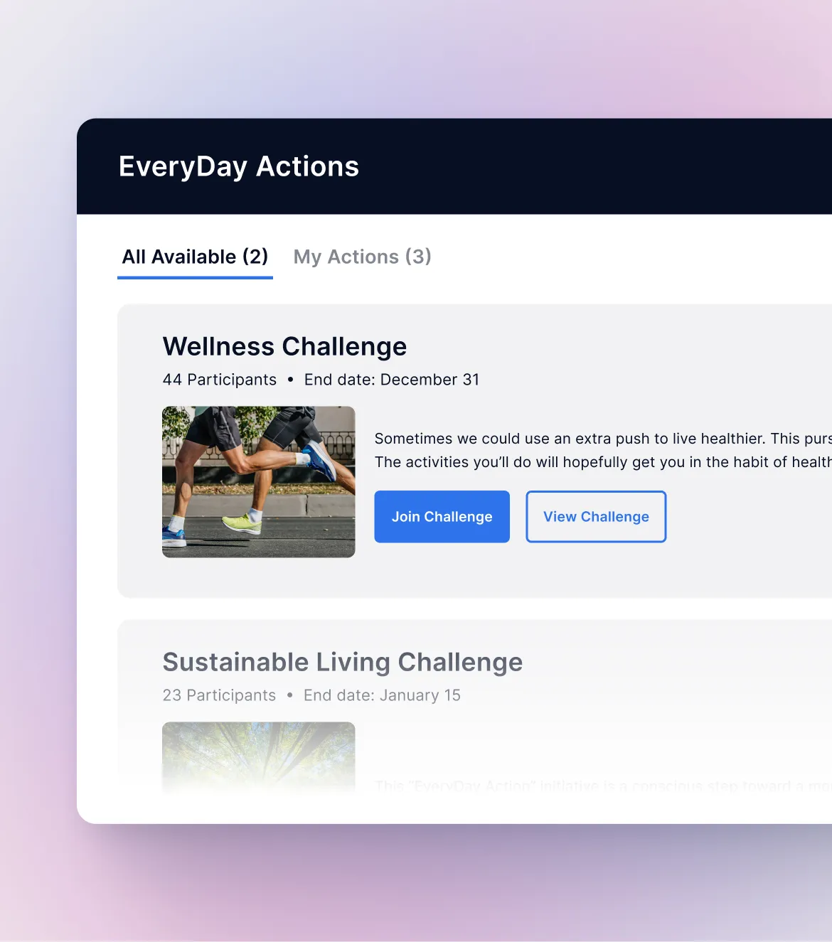 With the Impact Wallet, every employee engagement program can have a charitable component. Initiatives such as wellness challenges or workplace training can award employees charitable funds, which they can donate on their own time.