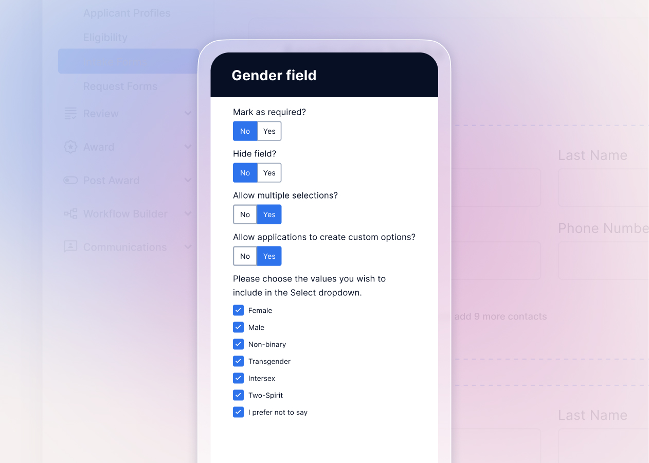 Use a drag-and-drop form and workflow builder to create application forms and review processes in minutes.